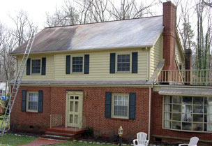 The ugly, dark stains that are so prevalent are caused by a very hardy “blue-green” algae, Gloeocapsa magma, that thrives on the asphalt (also called fiberglass or composite) shingled roofs in much of the country, especially in the more humid areas. Growth normally starts on the north side as well as shaded areas of the roof. As the algae grows, it holds moisture allowing the growth to accelerate. Thus the roof stains get worse and worse over time as well. Algae, moss & lichen spores are carried by wind, birds, squirrels, etc. If your roof is currently clean, it likely won’t stay that way if other houses in the area are already stained. Years ago, stains on asphalt shingled roofs were not a significant problem. Today it is a big problem because the design of asphalt shingles has changed over time. For the last 30 years or so, asphalt shingles have been manufactured using limestone as the base filler. Unfortunately, limestone is a favorite food of this strain of algae. Due to a lack of food, algae used to starve to death when it landed on your roof - now it thrives on your roof. There are other types of stains and growths found on roofs. Green roof stains are often caused by mold and mildew. Lichen & moss are common growths found on roofs in some parts of the country. Roof-Be-Clean â also removes and prevents stains and growths caused by all these organisms. Algae, Moss & Lichen also Damage the Roof & Shortens Roof LifeIt is bad enough that algae causes ugly roof stains, unfortunately it also damages the roof The algae takes root on the shingles dislodging the granules which protect & color the roof. It holds water to the roof's surface and can cause decay & rot of the roof's underlayment. Not only is your roof being discolored by the algae, but it is shortening the life of the roof leading to an early roof replacement. Moss and lichen do the same - however the damage normally occurs much faster. Walkway and Driveway Cleaning: